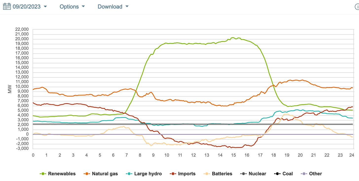 Below, I picked a day this year. Not summer, not winter, but near the equinox to demonstrate the California’s sources of energy.