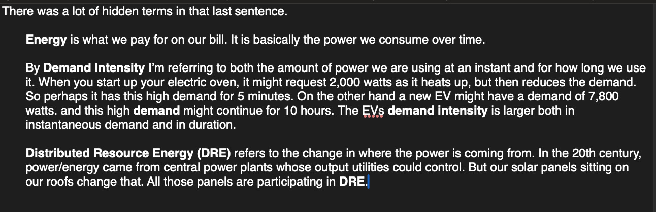 In this post, I describe how DRE and Renewables will force a change in the way we achieve continuing to have a stable grid. In a previous post (Electrify Everything) I covered my experience that demonstrates how peaks will shift as electric vehicles become the norm. This shift in intensity too will play a large role in determining what grid changes are necessary.