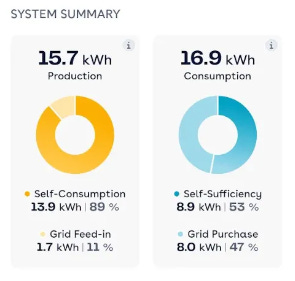 How can I have generated 15.7kWh so far today, and I have only consumed 16.9kWh, be just 53% self-sufficient? And why is there only 8.9kWh applied to my needs (energy world calls needs, demand)?